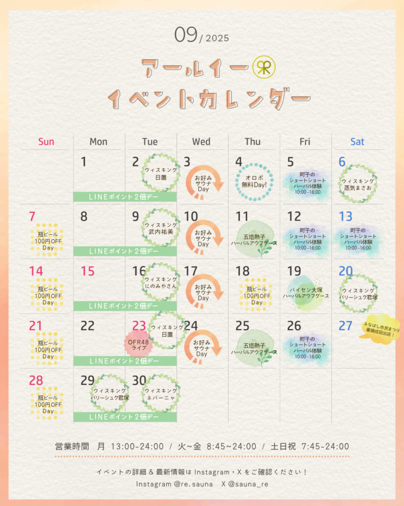 ※オロポ無料day,瓶ビール100円OFFは、サウナご予約のあるお客さまがプレゼント対象となります。カフェ利用のみのお客さまは対象外です。